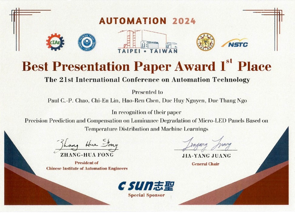 【The Best Paper Award 】 趙昌博教授與學生游鈞恆/李冠霖 |
